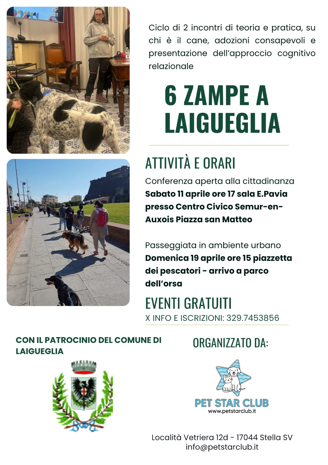 “6 zampe a Laigueglia” è un’iniziativa dedicata alla diffusione di una corretta cultura cinofila e alla promozione di un approccio consapevole alla relazione tra cane e proprietario nella società contemporanea.