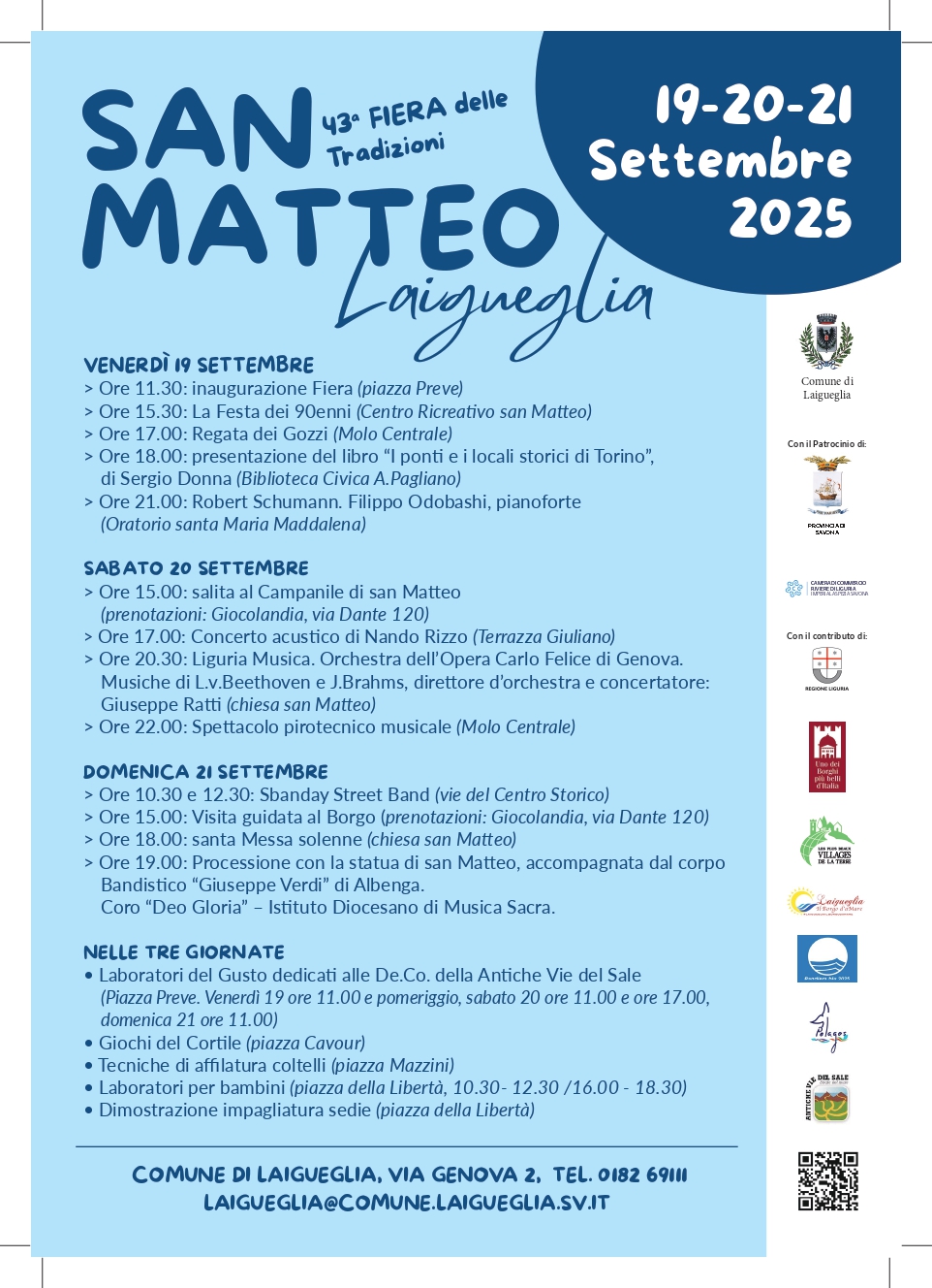Per informazioni: Comune di Laigueglia – Via Genova 2 Tel. 0182 691111 Email: